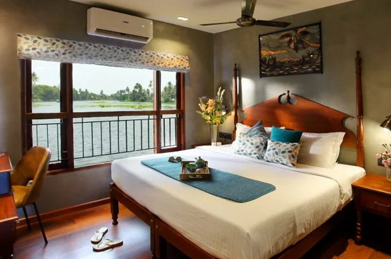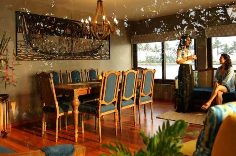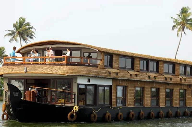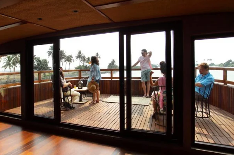 The air-conditioned hall on the upper deck serves as a multi-purpose space — perfect for lounging, dining, or even hosting a small conference. Step out to the sun deck and enjoy panoramic views of the backwaters, bask in the sunshine, or simply unwind as the cool breeze sets the mood for a peaceful escape.