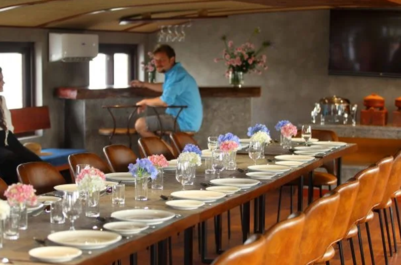 Each of the five spacious bedrooms is tastefully designed with fine furnishings and a blend of twin and double beds to suit every guest’s comfort. The beautifully designed living and dining areas offer the perfect ambiance for relaxation, conversation, and togetherness as you drift along scenic waterways surrounded by lush greenery.