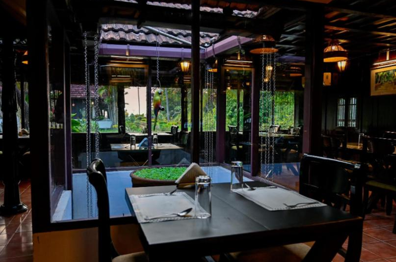 Infinity swimming pool with views of the back-water lake and sunset. - On-site restaurant and dining area, serving Kerala specialties alongside Indian & international dishes.