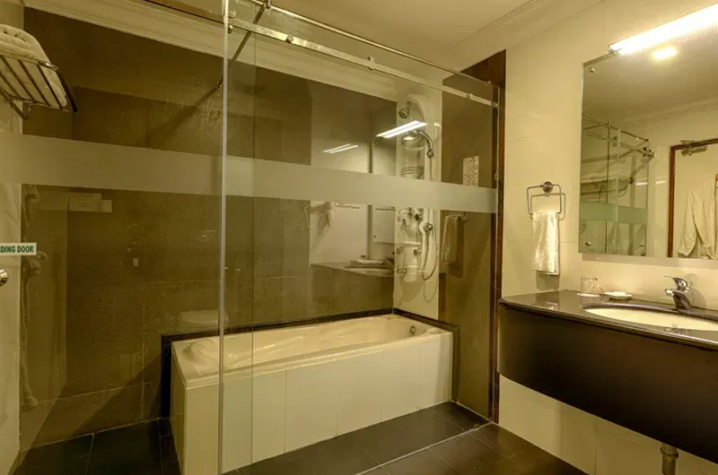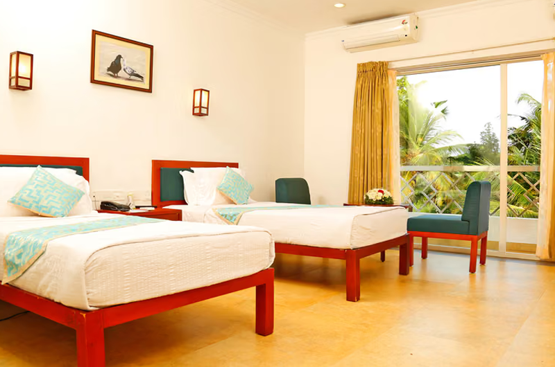 Each room comes equipped with modern amenities: air-conditioning, large comfortable beds, televisions, private bathrooms, balcony or sit-out space and scenic views of the green environment.