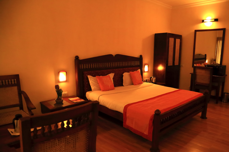 - Room types include lake-view suites, garden- or canal-facing suites, each built with private balconies or verandas, traditional teak wood furniture and terracotta flooring.