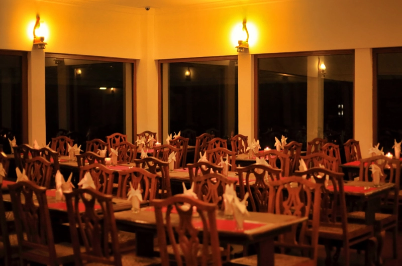 - Multi-cuisine restaurant “Suruchi” offering both local Kerala dishes and international fusion cuisine, with indoor and outdoor seating overlooking the backwaters. Fitness centre / gym, indoor games (table tennis, caroms, chess, cards) and 24-hour concierge to assist with backwater excursions and local experiences.
