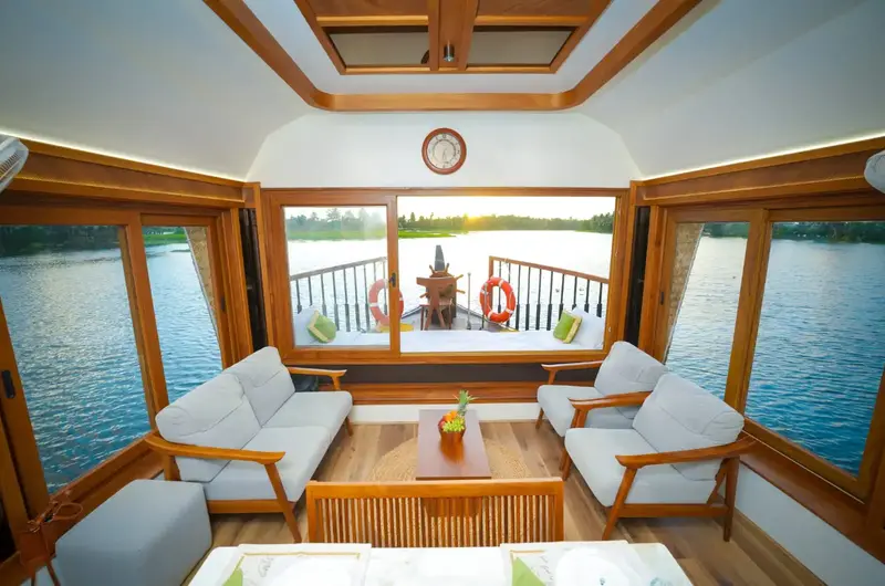 - Every corner of the boat blends Kerala’s traditional charm with modern luxury.